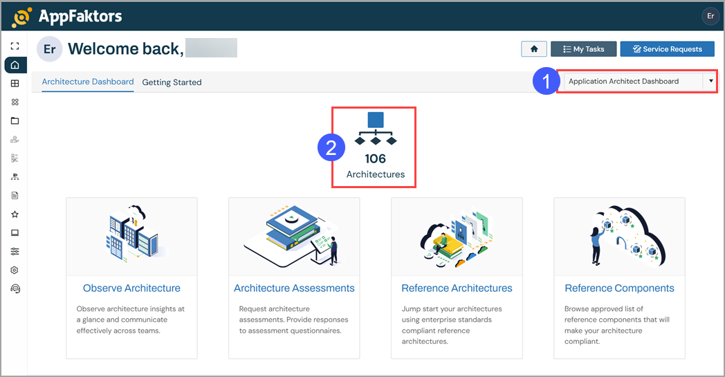 - Ensure that you have selected Application Architect Dashboard from the Dashboard drop-down menu.