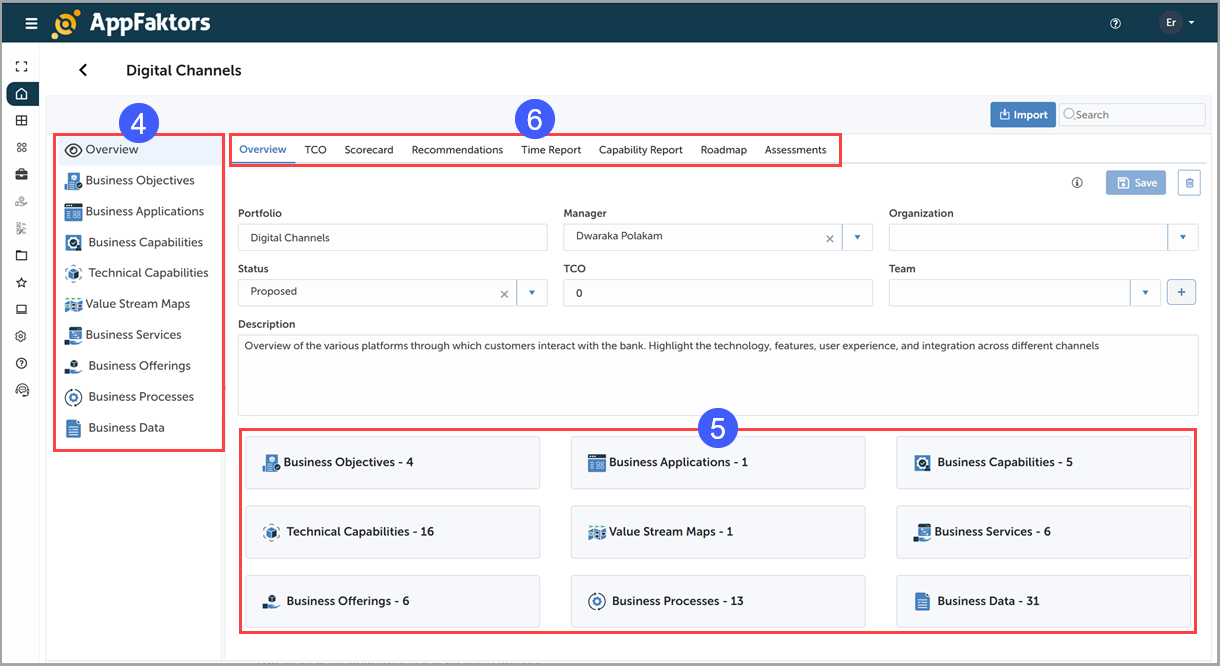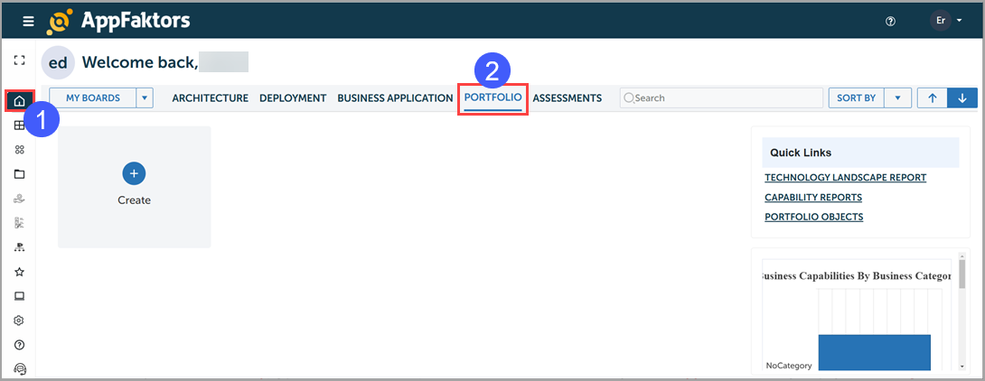 Use the PORTFOLIO tab to create portfolios and take a comprehensive look at your organization's enterprise architecture, including portfolio analysis. The following sections describe how to create and view portfolios. See Portfolio Objects for information about accessing and managing the components that comprise portfolios.