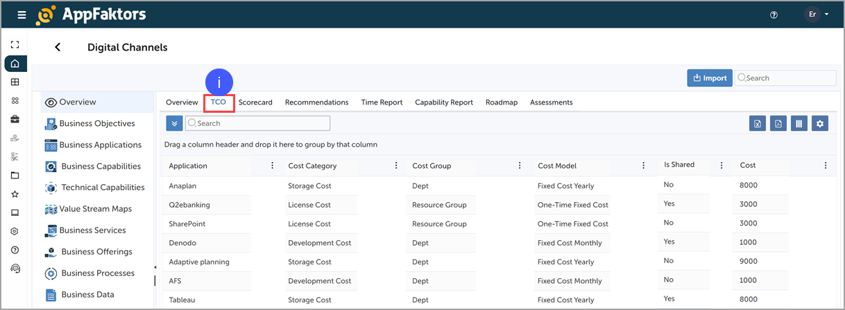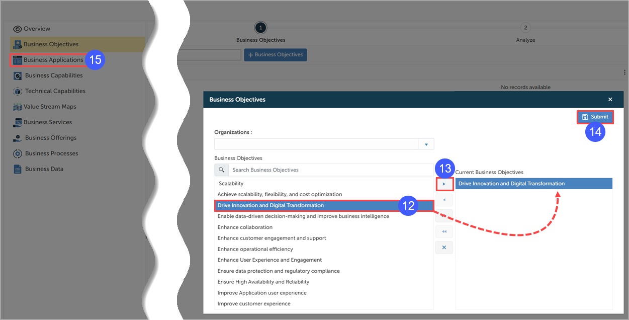 - Select Business Applications and add applications in much the same way as you just added business objectives.