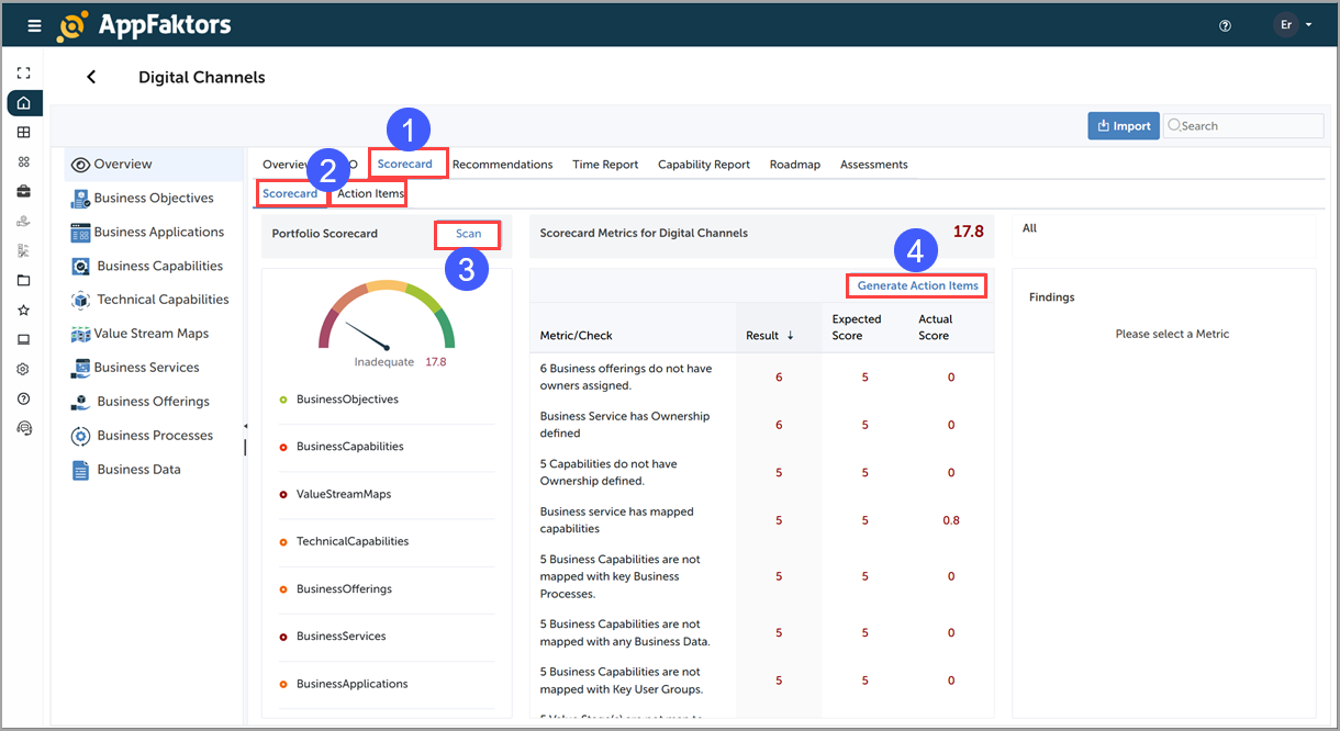 The scorecard reflects the portfolio's adequacy score and helps you create action items to address any areas for improvement.
