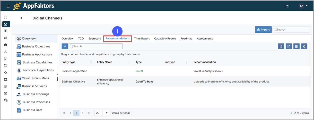 Click the Recommendations tab to view recommendations to improve the portfolio.