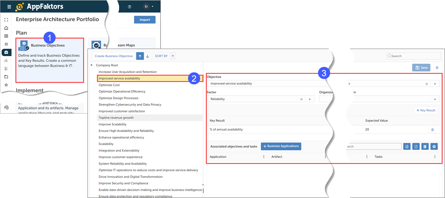 Business Objectives help you identify what you want to achieve in your portfolio. Use the Plan - Business Objectives page to view and create business objectives that you can later assign to portfolios.