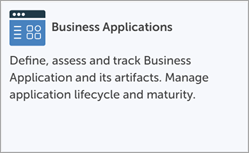 Business Applications: Define, assess and track business application and its artifacts. Manage application lifecycle and maturity.