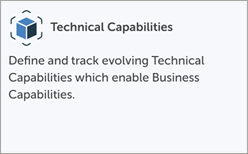 To view technical capabilities and products, follow the same procedure as described in Viewing business objectives, except click the Technical Capabilities and Products tile instead of the Business Objectives tile.